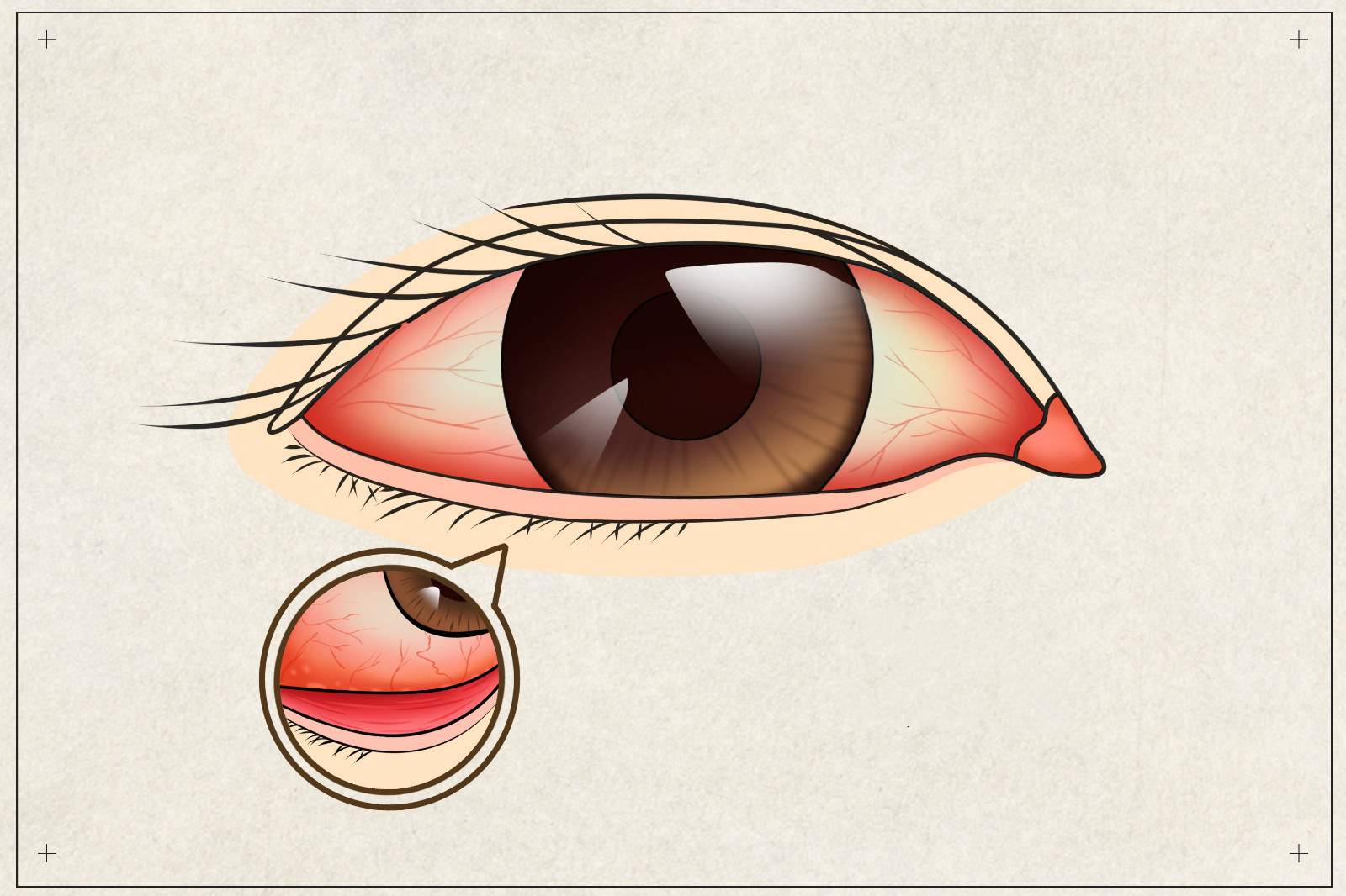 結(jié)膜炎會(huì)表現(xiàn)為結(jié)膜表層血管的擴(kuò)張,可以呈彌散性充血,也可表現(xiàn)為局部充血,充血的顏色多鮮紅,愈向穹隆區(qū)充血愈明顯,向角膜緣部充血減輕。不伴明顯水腫時(shí),推動(dòng)結(jié)膜血管可隨之移動(dòng),并無(wú)觸痛。結(jié)膜表面滴用0.1%腎上腺素后,結(jié)膜血管充血明顯消失。當(dāng)結(jié)膜炎癥同時(shí)累及角膜或鞏膜或筋膜組織時(shí),也可表現(xiàn)為結(jié)膜充血與睫狀充血同時(shí)存在,臨床上稱為混合充血。