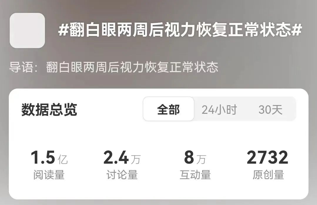 近日,一則 #翻白眼兩周后視力恢復(fù)正常狀態(tài)# 的話題登上微博熱搜。